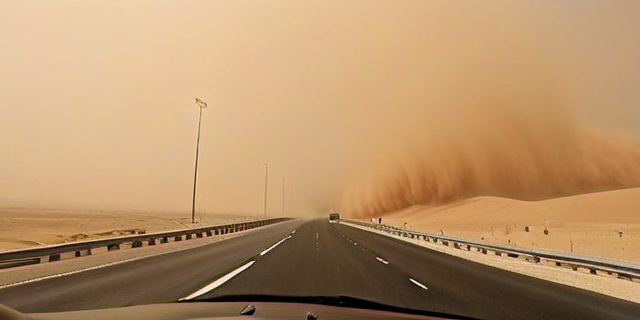 Во время песчаной бури из-за множества мелких частиц в воздухе видимость может снижаться до нескольких метров. Это существенно усложняет процесс ориентирования на дороге: